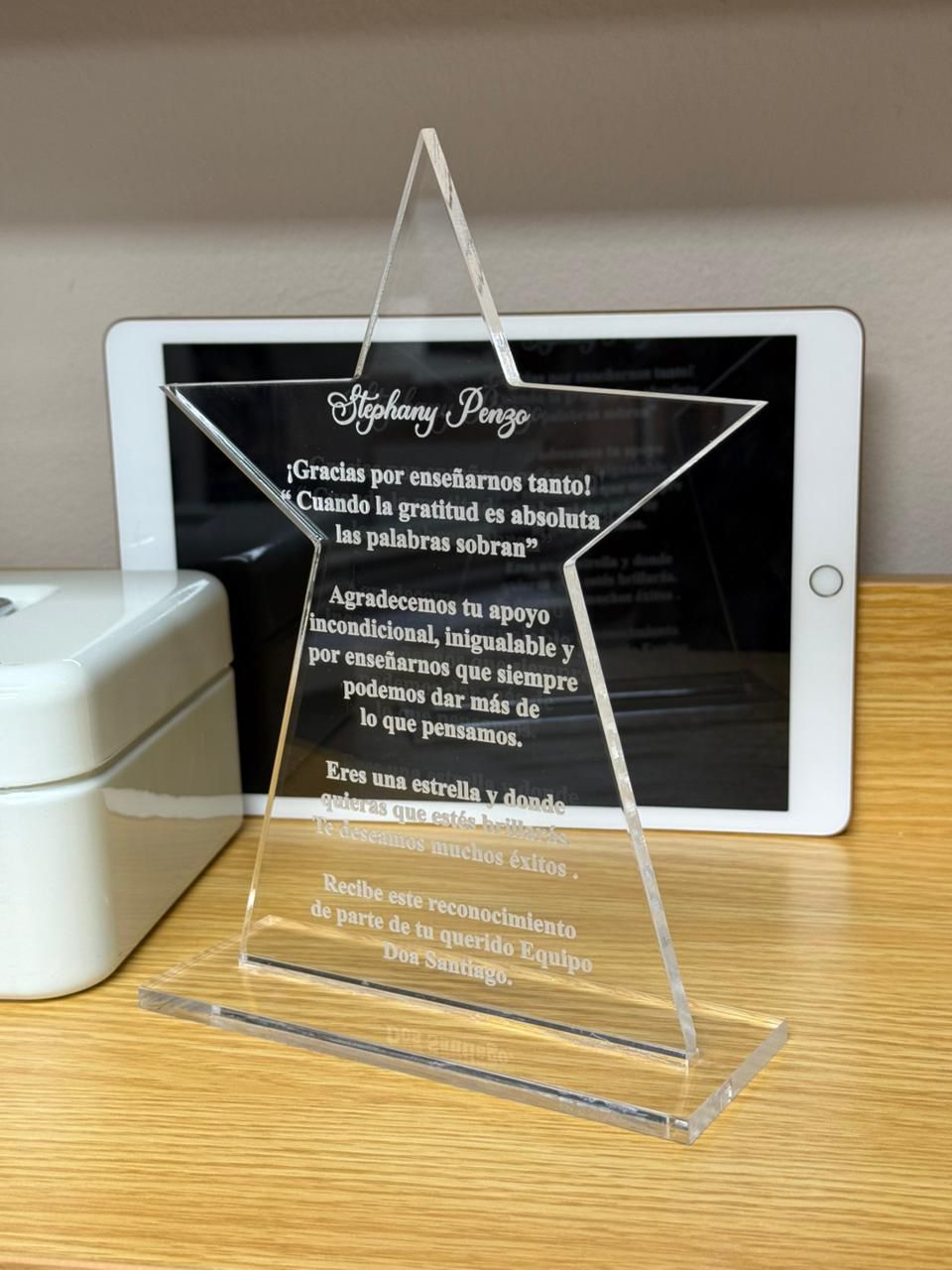 Celebra logros y momentos especiales con nuestros reconocimientos personalizados en acrílico y madera. Cada pieza combina la elegancia del acrílico transparente con la calidez natural de la madera, creando un premio único que transmite valor y distinción. Perfectos para eventos empresariales, escolares o personales, estos reconocimientos reflejan aprecio genuino y motivan a seguir superándose. Haz que cada mérito destaque con un diseño hecho a la medida, que impresiona y perdura en el tiempo.
